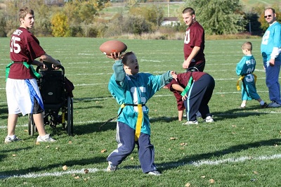 Fox Valley Pop Warner Football, Inc. started our Challenger League in 2006. The Challenger League is a flag football program for special needs children.; The goal of the program is to provide a fun-filled and positive experience for special needs children. It's offered to girls and boys ages 6 to 18 with a cognitive, social or physical disability.  Games are non-contact Flag Football and are non-competitive. Parents can assist their child or ask for a volunteer buddy to assist their child.